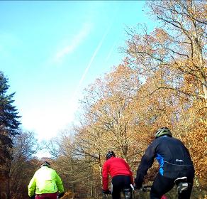 Heute sind wir zu fünft am Ellerspring unterwegs. Die Wege sind extrem nass und wir müssen schwer treten. Olaf—durch den langen Australienurlaub entkräftet, wählt nach ein paar Kilometern einen eigenen Weg. |