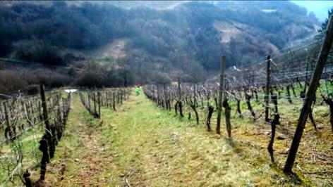 16.3.2015 Rund um den Heimberg endete Marios Tourvorschlag im Nichts. Der Weg ist zu Ende—also zurück oder steil abwärts im Weinberg.