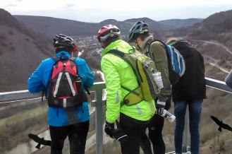 Besonders die Passage vom Kellenbachtal hoch nach Schlierschied und dann quer durch den Wald nach Hennweiler war anspruchsvoll. Über den Karlshof erreichten wir dann die Aussichtsplattform. Nach dem Blick in die Tiefe ging es abwärts und über den Naheradweg Richtung Heimat. Nach einem “Cafe und Waffeln-Stopp“ in Bad Sobernheim erreichten wir dann über Sponheim ziemlich geplättet gegen 18:30 Uhr wieder Braunweiler. |