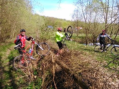 Das neue Rad mit dem ersten Sturz eingeweiht. Ich dachte, ich könnte über die Böschung am dem umgestürzten Baum vorbeifahren. Da war leider nur loses Geröll und ich habe mich sanft zur Seite gelegt. Nix passiert!